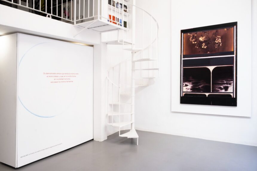 El texto de sala, firmado por Javier Moral Martín, incide en esa idea de explorar el mundo a través de la saturación y transformación de imágenes. Según su interpretación, la artista colecciona, confronta y manipula imágenes —“imágenes de imágenes”— hasta someterlas al azar y al montaje, desconectándolas de su significado inmediato para que, finalmente, revelen un nuevo destello en su traslado al formato pictórico. Además de las obras creadas específicamente para esta exposición, Císcar ha intervenido el patio trasero de la galería con un collage temporal que permite al público asomarse al origen de su proceso creativo. En ese espacio se exhiben algunas de las imágenes que funcionan como punto de partida de su investigación artística.