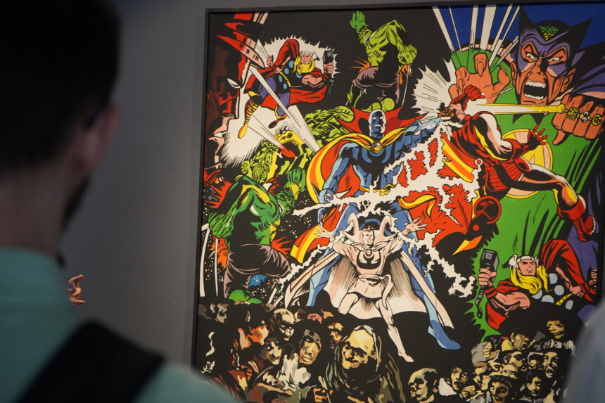 D’altra banda, l’església de Sant Domènec es converteix en l’escenari de l’ambició plàstica del grup en els seus formats més grans. En aquest espai monumental s’exposen obres de gran format com les emblemàtiques La manifestació o Pícnic torero, testimonis de l’interès del col·lectiu pels llenguatges de la cultura de masses. Són peces que utilitzen l’estètica del cartellisme i la publicitat per retratar el context polític de la dictadura i la transició, demostrant que l’art pot ser un instrument de reflexió col·lectiva. L’exhibició es completa a més amb un espai dedicat a l’obra gràfica i la reproductibilitat tècnica, inspirat en les idees de Walter Benjamin, que posa de manifest la voluntat de l’Equipo Crónica d’acostar l’art a tots els estrats de la societat.